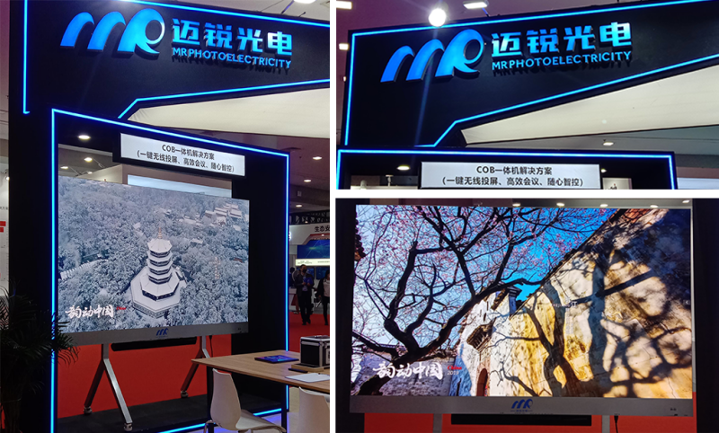 安博会上,迈锐光电不仅展出了明星产品UTV小间距系列产品,还结合疫情之下远程协作需求,视频会议市场空间迅速扩容。迈锐光电全倒装COB一体机解决方案直击市场趋势,采用全倒装COB芯片与高密集成封装技术,配备高动态HDR技术;具有一键无线投屏,分屏显示、全向遥控、快速分享等功能;且具备高刷新、高灰度、广色域的显示特点,广泛适用于政府部门、企事业单位、学校、酒店的会议室、接待室及多功能综合展厅等领域。