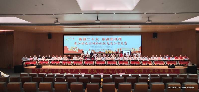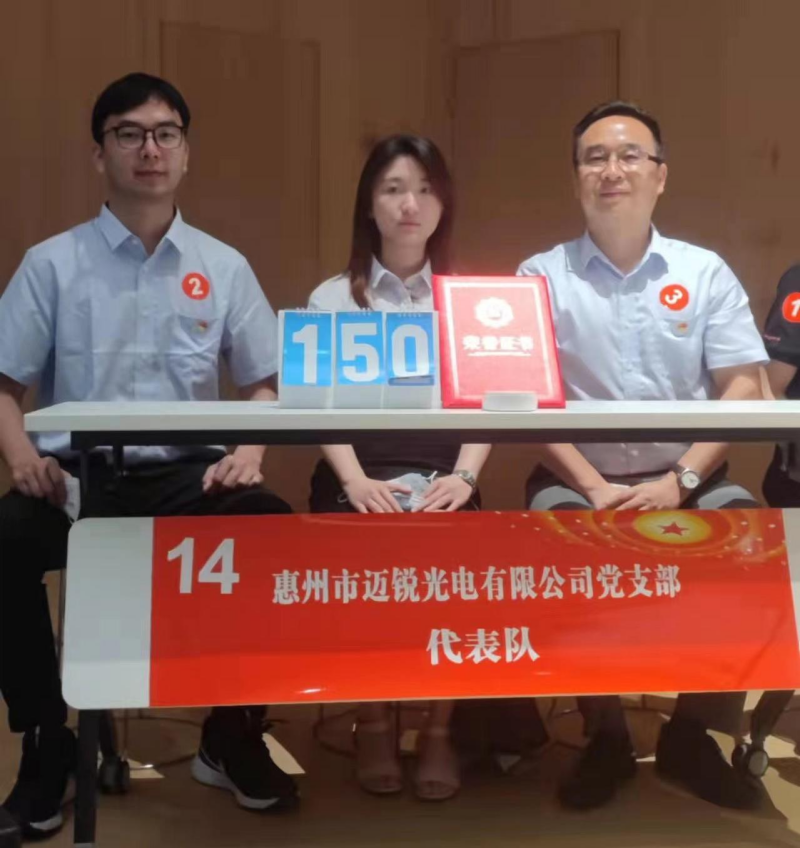 4月28日,由东江科技园两新组织举办,以“喜迎二十大、奋进新征程”为主题的党史知识竞赛正式开赛,来自园区党委委员班子成员以及14支两新党支部代表队参加竞赛。经过紧张激烈的角逐,迈锐光电党支部代表队以优异的成绩荣获第三名。