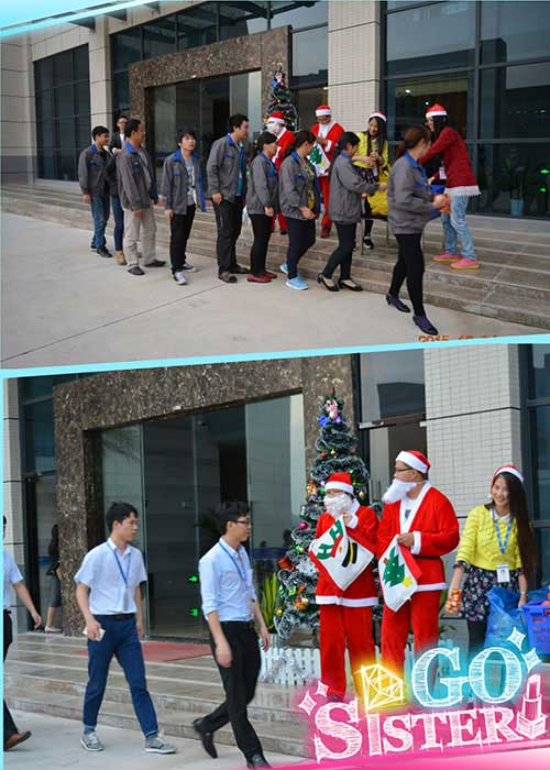 随着下班铃声的响起,两位圣诞老人在人事行政韩总监及人事景经理的带领下,提前在同事们下班的必经之路守候,为每一位同事们送上圣诞礼物,并表达了节日的问候和祝福,同事们的喜悦之情溢于言表。在这个充满欢笑的日子里,我们给予的不仅是节日的礼物,更是平安夜的祝福。