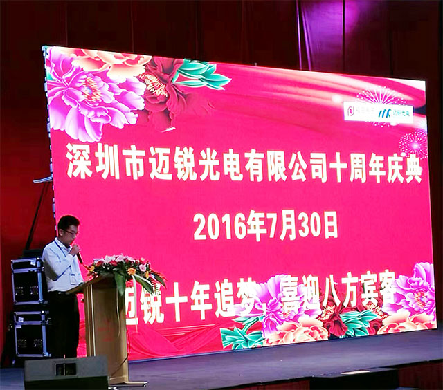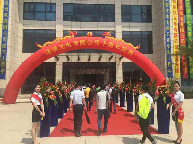 2016年7月30日,深圳市迈锐光电有限公司(以下简称迈锐光电)内外鲜花灿漫、彩旗招展、气球高悬,迎来了公司十周年华诞。为了感谢新老客户的支持,在惠州皇冠假日酒店举行了一场庆典活动,公司全体领导、客户与合作伙伴齐聚一堂,共赴繁花似锦的十年之约。