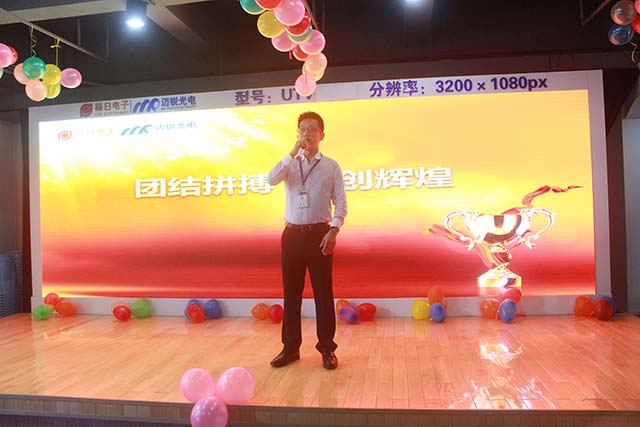 颁奖结束后,主持人请陈总上台为大家讲话。陈总肯定了大家努力和成绩,并深深地感谢同事的辛勤劳动,一再地说:同事们辛苦了!谢谢大家!陈总诚恳谦虚的态度感动了在场每一位同事,大家不断以热烈的掌声来表达对陈总的敬意!迈锐有个好老板!迈锐也有一班好同事!迈锐的明天一定会更好!