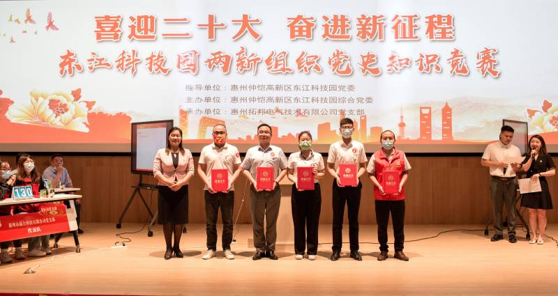 4月28日,由东江科技园两新组织举办,以“喜迎二十大、奋进新征程”为主题的党史知识竞赛正式开赛,来自园区党委委员班子成员以及14支两新党支部代表队参加竞赛。经过紧张激烈的角逐,迈锐光电党支部代表队以优异的成绩荣获第三名。