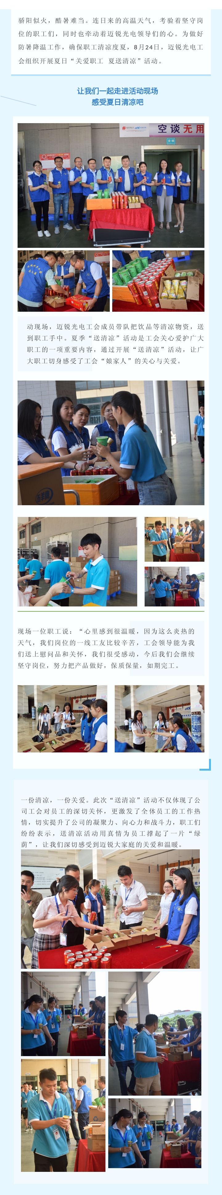 来自“娘家人”的关心,迈锐光电工会开展“关爱职工 夏送清凉”活动