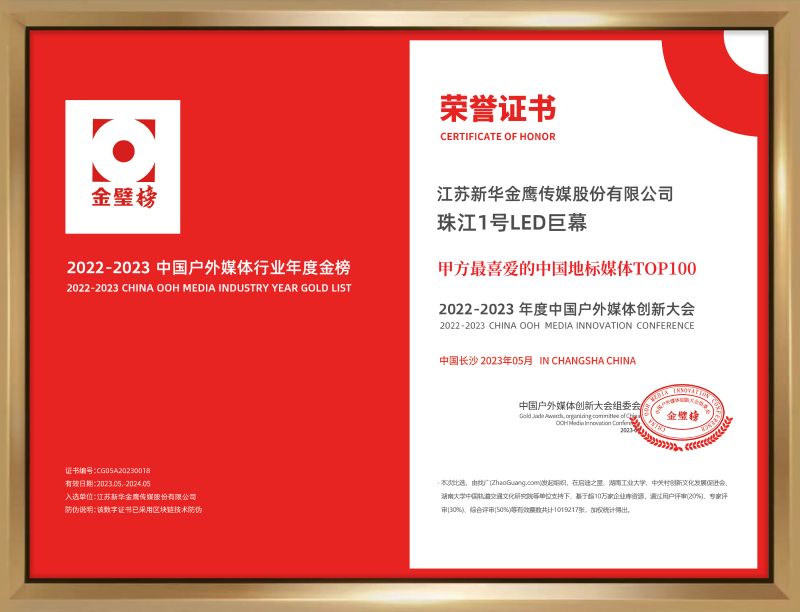 近日,“金璧奖·2023中国户外媒体创新大会”以“超级媒体、超级流量、超级品牌”为主题盛大开幕,由迈锐光电匠心打造的南京「珠江1号巨幕」凭借在品牌增值、流量变现、媒体传播等方面的傲人成绩,成功斩获「甲方最喜爱的中国地标媒体TOP100」荣誉。