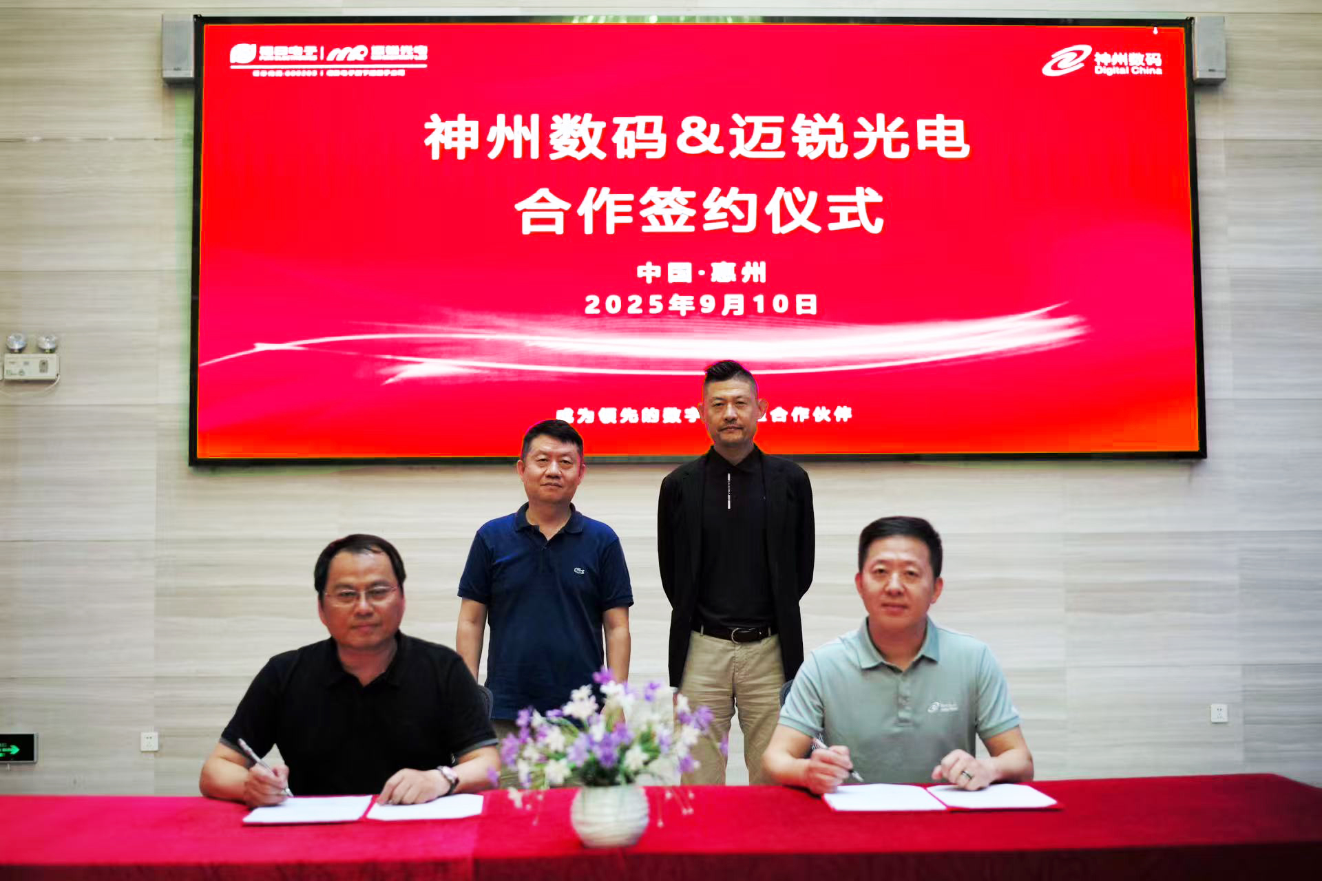 2025年9月10日,迈锐光电与神州数码在惠州举行合作签约仪式。双方将整合在LED显示技术、云计算、大数据、物联网及人工智能等领域的优势,共同推进智能显示产品与数字化解决方案的创新与应用。